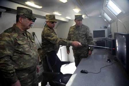 İdarəetmənin, təminatın, yardımçı qrupların, məntəqələrin işinin, döyüş növbətçiliyinin təşkili və aparılması məqsədilə müasir avtomatlaşdırılmış idarəetmə sistemləri ilə təmin edilən mobil qərargahda fəaliyyətləri izləyən müdafiə naziri müvafiq göstərişlər verib.