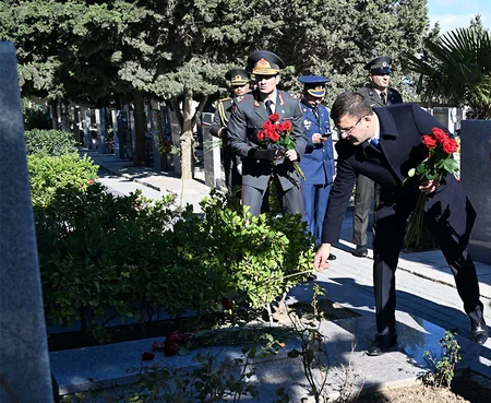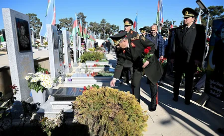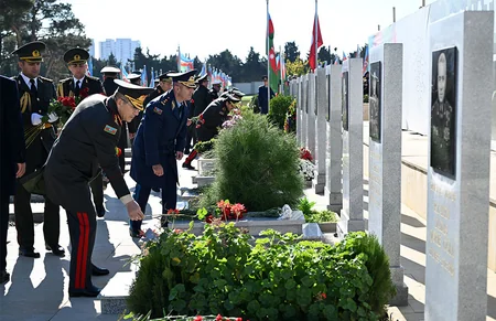 Müdafiə Nazirliyinin rəhbər heyəti şəhidlərin məzarlarını ziyarət edib