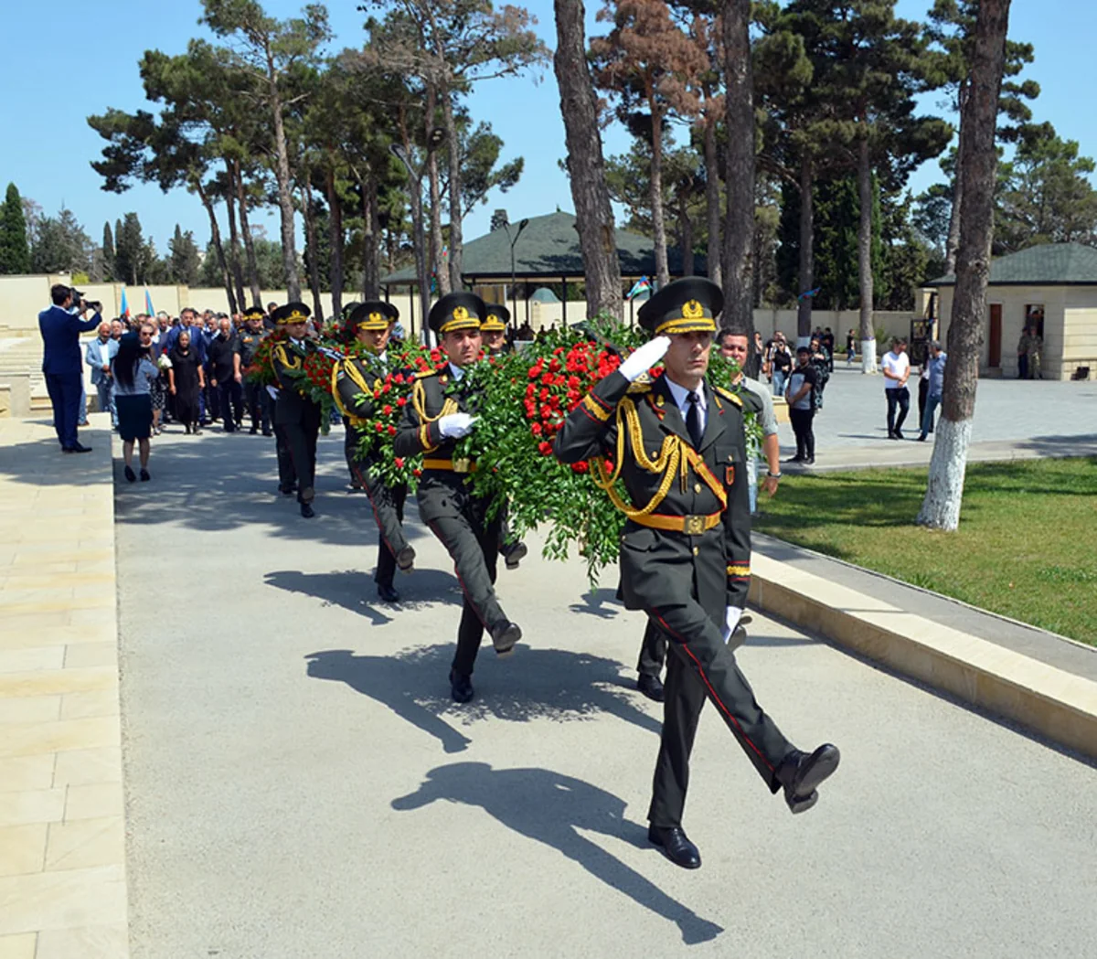Müdafiə Nazirliyindən "Report"a bildirilib ki, nazirliyin və ictimaiyyətin nümayəndələri, rayon icra hakimiyyətlərinin əməkdaşları, şəhidlərin ailə üzvləri, yaxınları, eləcə də döyüş yoldaşlarının iştirak etdiyi tədbirlərdə xalqımızın ümummilli lideri Heydər Əliyevin, Azərbaycanın suverenliyi, müstəqilliyi və ərazi bütövlüyü uğrunda şəhid olanların xatirəsi bir dəqiqəlik sükutla yad edilib. Hərbi orkestrin müşayiəti ilə Azərbaycan Respublikasının Dövlət Himni səsləndirilib.