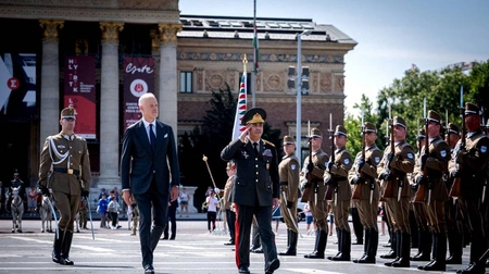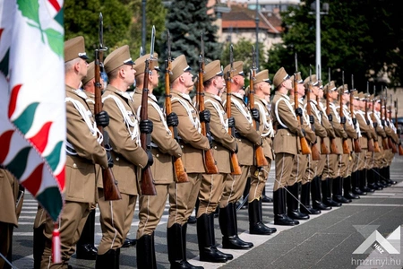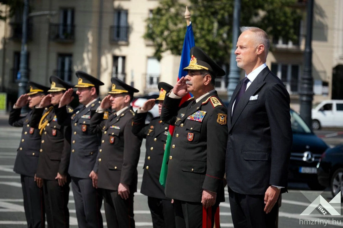 Macarıstan Müdafiə Nazirliyinin binasında təşkil edilən rəsmi qarşılanma mərasimində müdafiə nazirləri fəxri qarovulun önündən keçiblər. Hərbi orkestrin müşayiəti ilə hər iki ölkənin dövlət himnləri səsləndirildikdən sonra fəxri qonaq kitabı imzalanıb.
