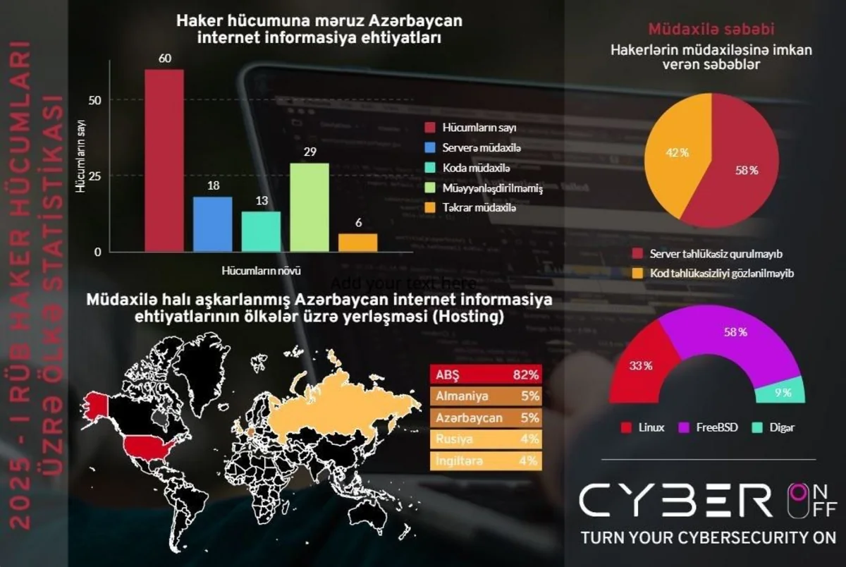 Kibermüdaxilə halları aşkarlanan veb-resursların ölkələr üzrə statistikasına nəzər saldıqda onların 82 %-nin ABŞ, 5 %-nin Almaniya, 5 %-nin Azərbaycan, 4 %-nin Rusiya, 4 %-nin İngiltərədə saxlanıldığı (Hosting) müəyyən olun