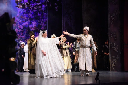 Rəsmi hissənin ardından tamaşa təqdim olunub. Azərbaycanlı rejissor Əflatun Nemətzadə tərəfindən yüksək pəşəkarlıqla hazırlanmış opera gurultulu alqışlarla qarşılanıb və tamaşaçılarda xoş təəssürat yaradıb.