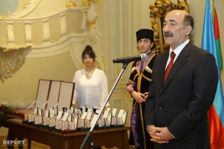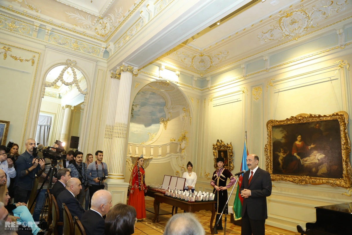 Bakı. 22 dekabr. REPORT.AZ/ Azərbaycan Milli İncəsənət Muzeyində Prezident İlham Əliyevin müvafiq sərəncamları ilə Azərbaycan mədəniyyətinin inkişafındakı xidmətlərinə görə orden, medal və fəxri adlara layiq görülmüş mədəniyyət və incəsənət xadimlərinə mükafatların təqdimat mərasimi keçirilib.