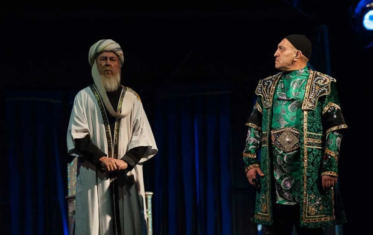 İki hissəli səhnə əsərində Əməkdar artist Abbas Qəhrəmanov (Ağa Məhəmməd şah Qacar), Xalq artisti Laləzar Mustafayeva (Ceyran xanım), Xalq artisti Sabir Məmmədov (Sadıq xan), aktyor Elnar Qarayev (Kərim xan Zənd), əməkdar artistlər Anar Heybətov (Cəfərqulu xan), Aslan Şirin (Şeyx Cəfər Tonkabani), aktyor Mətləb Abdullayev (Məhəmməd Əli xan Bəylərbəyi), əməkdar artistlər Kazım Abdullayev (Əli xan Cocuq), Elşən Rüstəmov (Əli xan Şambatayi), Ayşad Məmmədov (Axund Hacı Babək), aktyorlar Samirə Xanlarova (balaca qız), Canəli Canəliyev (Balaca Qacar), Fəridə Şahbazova və Xədicə Novruzlu (Yeniyetmə qız) və İmran Əli Qurban (Yeniyetmə Qacar) çıxış edirlər.