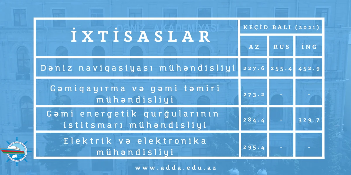 "Azərbaycan Xəzər Dəniz Gəmiçiliyi" QSC-nin (ASCO) Azərbaycan Dövlət Dəniz Akademiyası (ADDA) 2022/2023-cü tədris ili üçün tələbə qəbulu elan edb.
