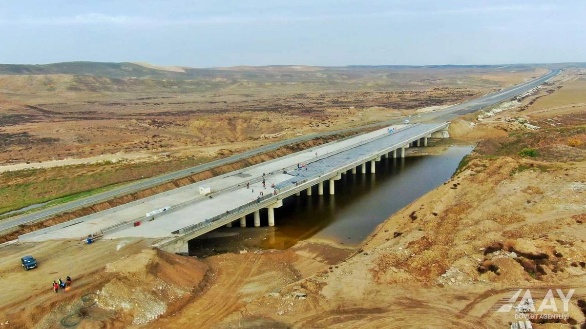 Yolun layihə üzrə nəzərdə tutulan və 0.2, 5.6, 12 və 39-cu kilometrlik hissələrdə yerləşən 4 körpünün tikintisi, 63 və 65-ci kilometrlik hissələrdə isə yolötürücülərinin inşası yekunlaşıb.