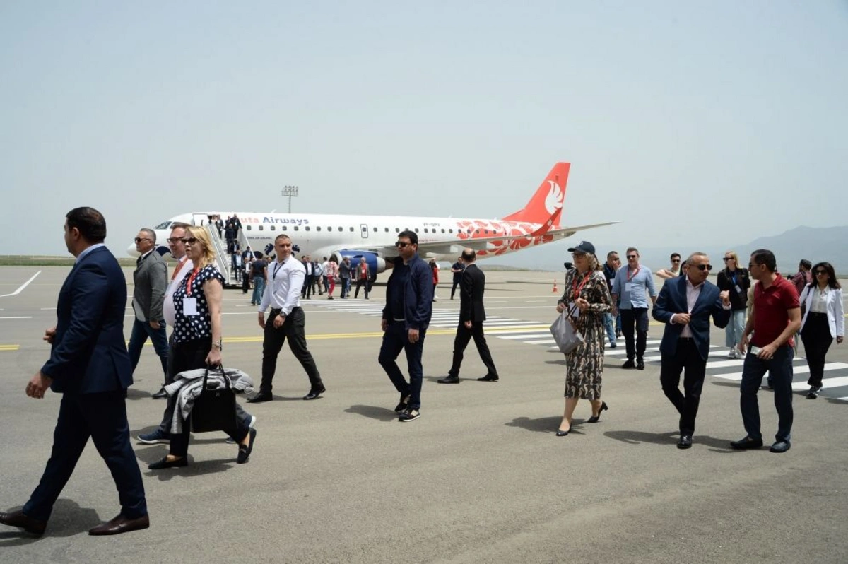 Səfər çərçivəsində qonaqlar təyyarə ilə Zəngilan beynəlxalq hava limanına gəliblər. Onlara burada Azərbaycan Prezidenti İlham Əliyevin sərəncamı ilə tikilmiş Zəngilan Beynəlxalq Hava Limanının texniki imkanları barədə məlumat verilib.