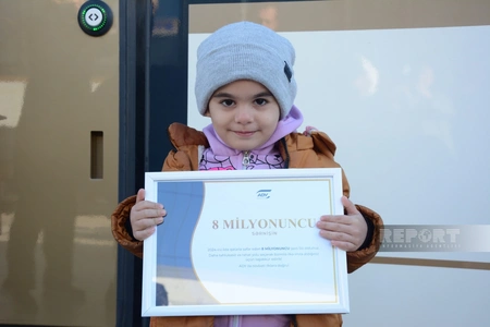 ADY-nin Sərnişin daşımaları departamentinin nümayəndələri 8 milyonuncu sərnişin olan 4 yaşlı Dəniz Məmmədlini və valideyni Aydan Məmmədlini təbrik edərək rayonlararası istiqamətlərə birinci sinif üzrə gediş-dönüş bileti və xatirə hədiyyələri təqdim ediblər.