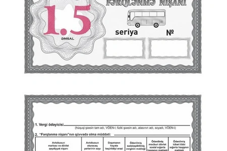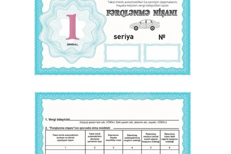 Qərarla, avtobuslar və taksi minik avtomobilləri ilə sərnişin daşımalarını həyata keçirən vergi ödəyiciləri üçün “Fərqlənmə nişanı”nın forması təsdiqlənib.