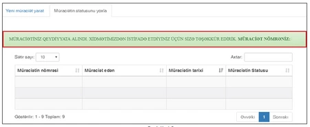 Müraciətin qeydiyyata alınması üçün aşağıda qeyd edilən məlumatları sistemə elektron formada daxil edilməlidir: