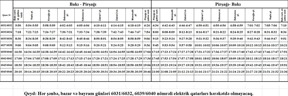 “Report” xəbər verir ki, artıq qatarla Sabunçu stansiyasından sonra yerləşən Zabrat-1, Zabrat-2, Məhəmmədi və Pirşağı stansiyalarına getmək və əks istiqamətdə qayıtmaq mümkündür.