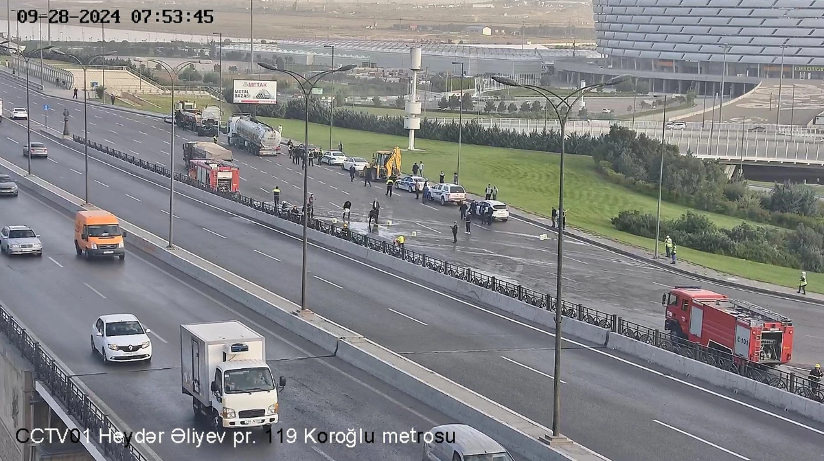 DİN-in Nəqliyyatı İntellektual İdarəetmə Mərkəzindən “Report”a verilən məlumata görə, hadisə nəticəsində avtomobildə olan maye yola dağılıb.