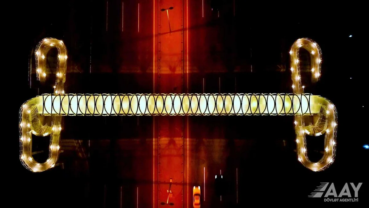 Yol səviyyəsindən hündürlüyü 5,5 metr təşkil edən keçid üstüaçıq və torşəkilli metal konstruksiyadan ibarətdir. Keçiddə fiziki məhdudiyyətli insanların rahat hərəkətini təmin etmək üçün beynəlxalq standartlara uyğun oval tipli piyada pandusları quraşdırılıb.
