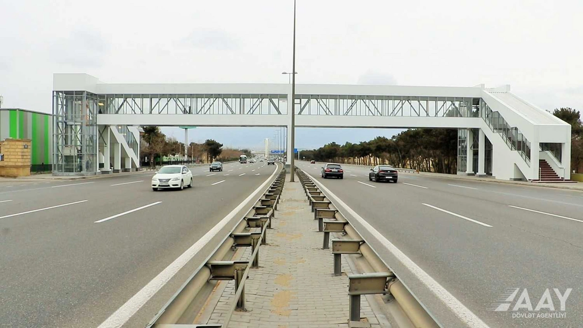 Azərbaycan Avtomobil Yolları Dövlət Agentliyi Bakıda Hava Limanı-Mərdəkan-Zuğulba avtomobil yolunun 3-cü km-də yeni piyada keçidinin inşasını yekunlaşdırıb.