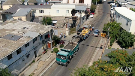 Aparılan təmir işləri çərçivəsində hazırda ərazidə köhnə asfalt-beton örtüyünün frezlənməsi, mövcud piyada səkilərinin bərpası, 1600 p/m bordür daşlarının düzülməsi işləri icra olunur.