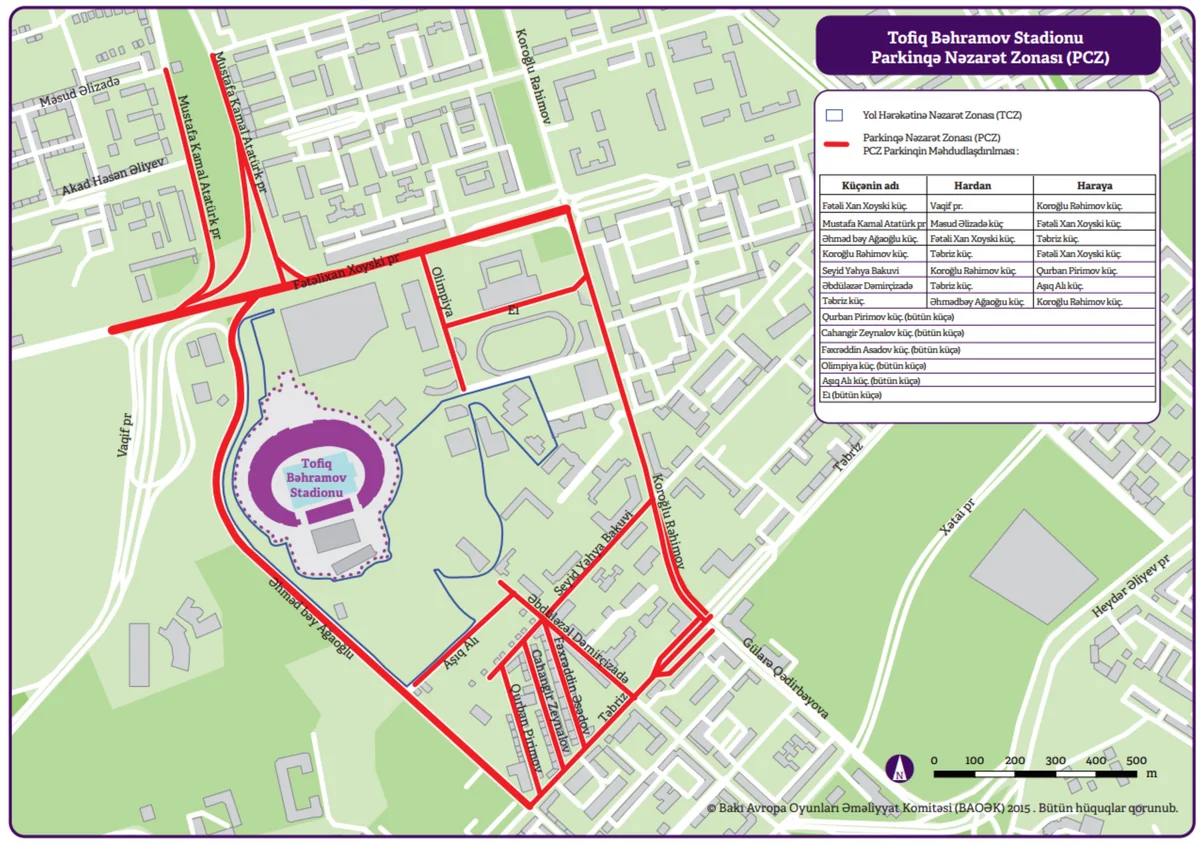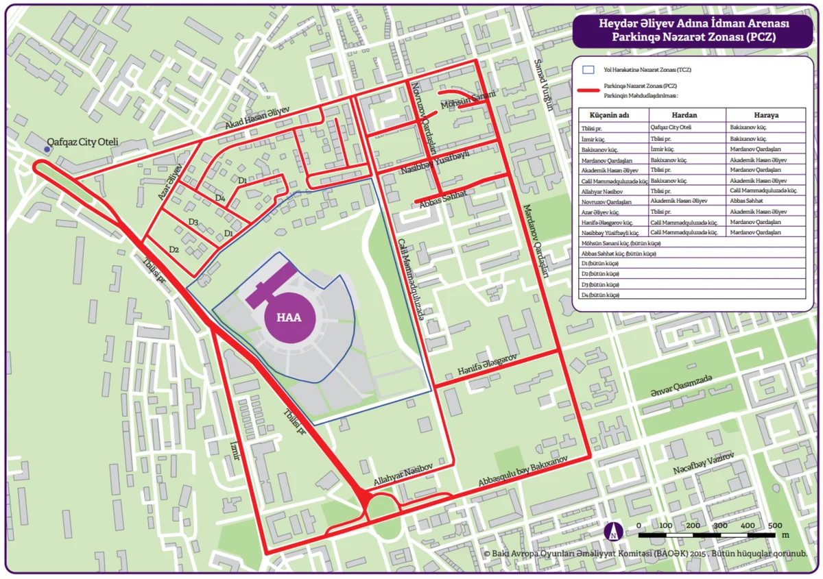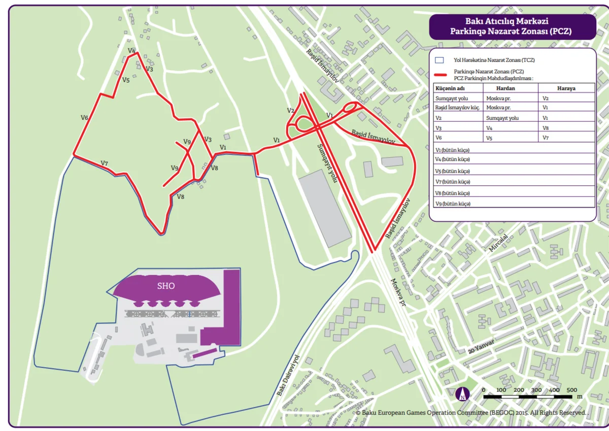 "Report" xəbər verir ki, beynəlxalq oyunlar zamanı hər bir yarış və əsas qeyri-yarış obyektləri ətrafında Parkinqə Nəzarət Zonaları olacaq. Bu nəzarət zonalarının məqsədi yarış obyektlərinə yaxın ərazilərdə qanunla icazə verilən yerlərdə yalnız burada yaşayan sakinlərə parkinqə icazə verməklə onların evlərinə rahat gediş-gəlişini təmin etməkdir.