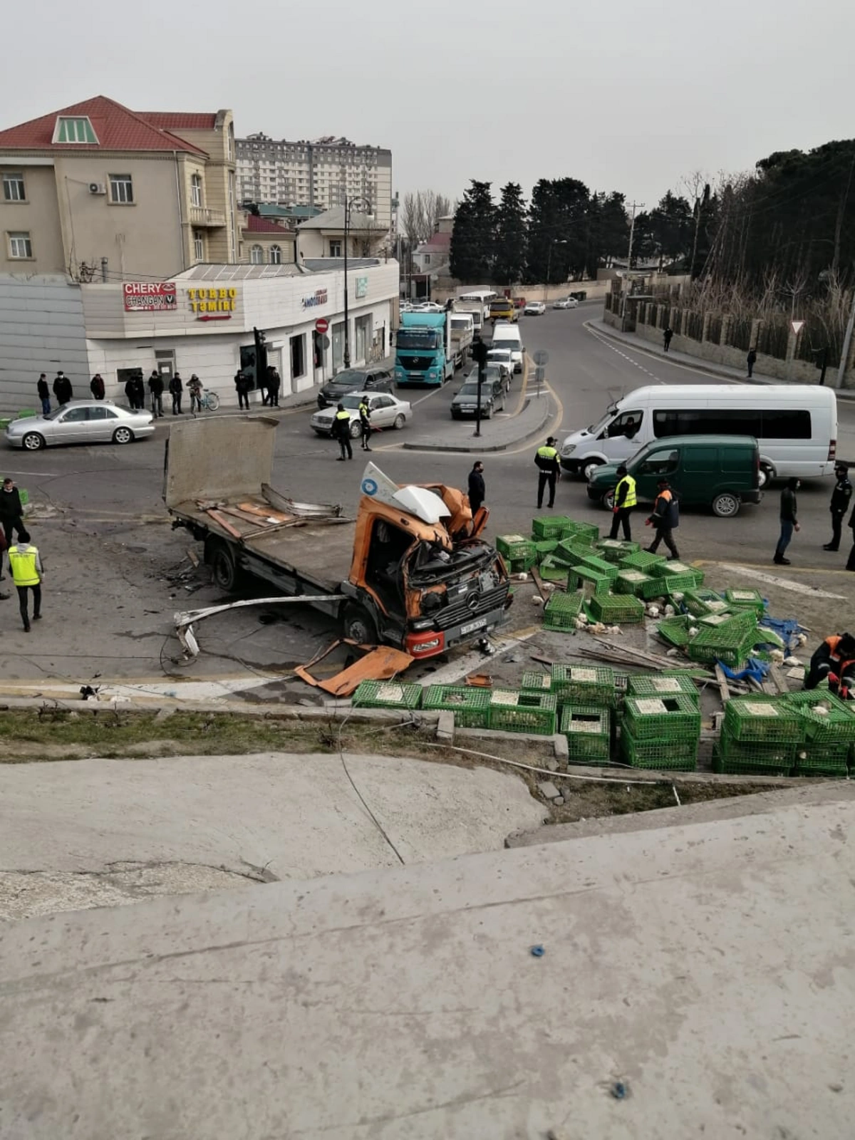 Xoşbəxtlikdən qəza zamanı yük maşınının aşdığı hissədə başqa avtomobillər olmayıb.