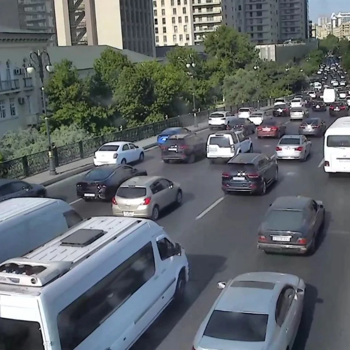 15. Mikayıl Useynov prospekti, Bayraq Meydanının qarşısından Azneft dairəsi istiqamətində sıxlıq müşahidə olunur.