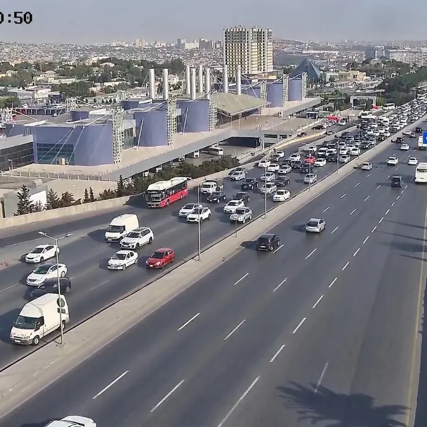 Bakının bir sıra yollarında nəqliyyatın sıxlığı müşahidə olunur.