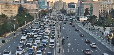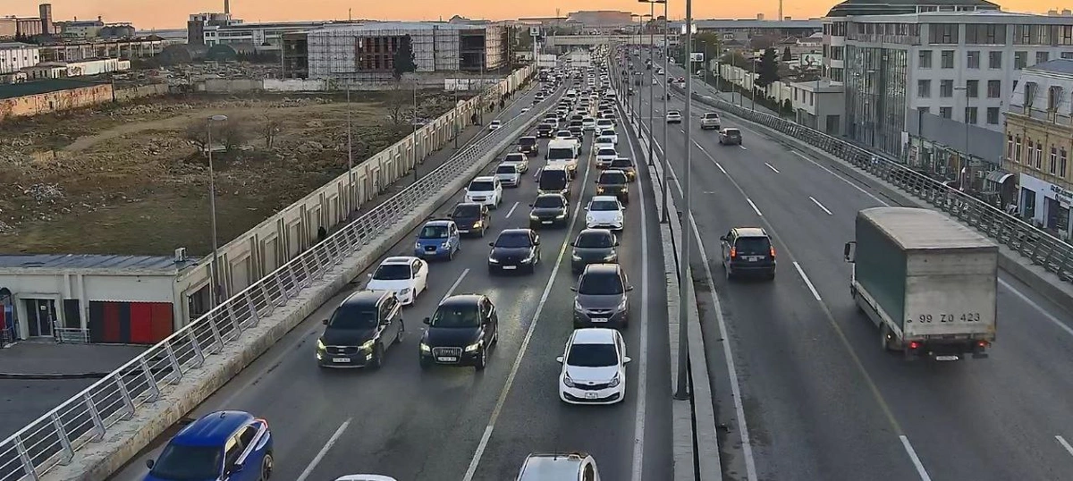 Bakının bir sıra yollarında nəqliyyatın sıxlığı yaranıb