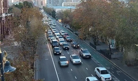 13. Ziya Bünyadov prospekti, Müzəffər Nərimanov küçəsi ilə kəsişmədən "20 Yanvar" metro stansiyası istiqamətində sıxlıq müşahidə olunur.