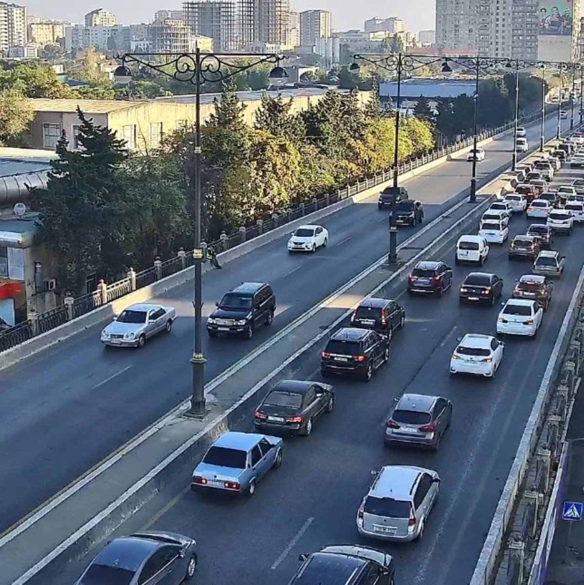 9. Yusif Səfərov küçəsi, Heydər Əliyev prospekti istiqamətində sıxlıq müşahidə olunur.