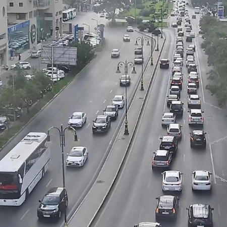 5. Heydər Əliyev prospekti, əsas yol, mərkəz istiqamətində sıxlıq müşahidə olunur.