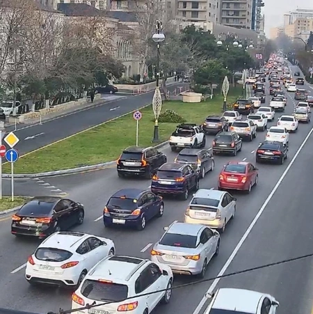 18. Üzeyir Hacıbəyli küçəsi, Azadlıq prospekti ilə kəsişməyə qədər sıxlıq müşahidə olunur.