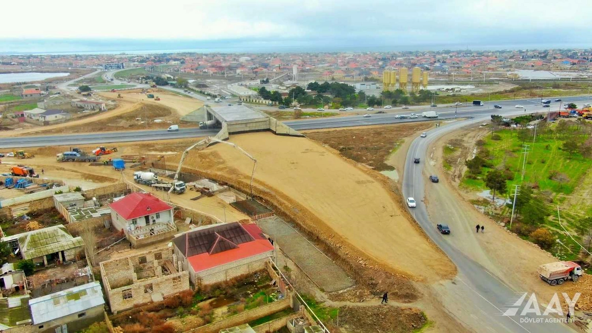 Azərbaycan Avtomobil Yolları Dövlət Agentliyi Pirşağı-Novxanı-Xırdalan-M4 avtomobil yolunun tikintisi layihəsi çərçivəsində Bakının Kürdəxanı qəsəbəsində yeni yol qovşağı inşa edir.