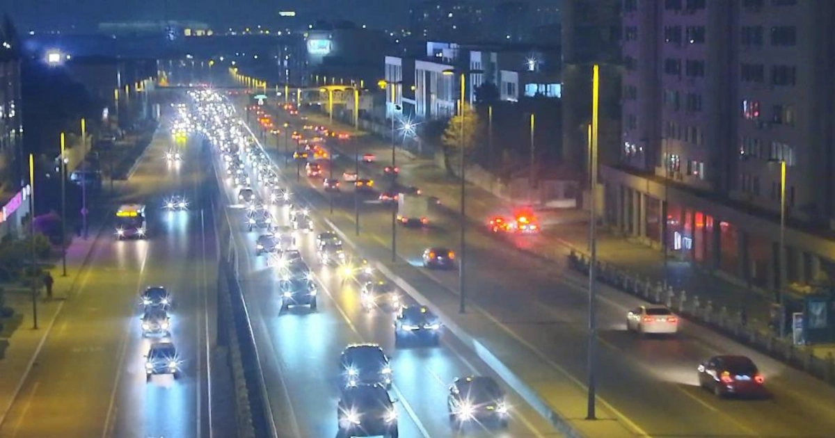 8. Bülbül prospekti, "Sahil" metrostansiyasının qarşısında sıxlıq müşahidə olunur.