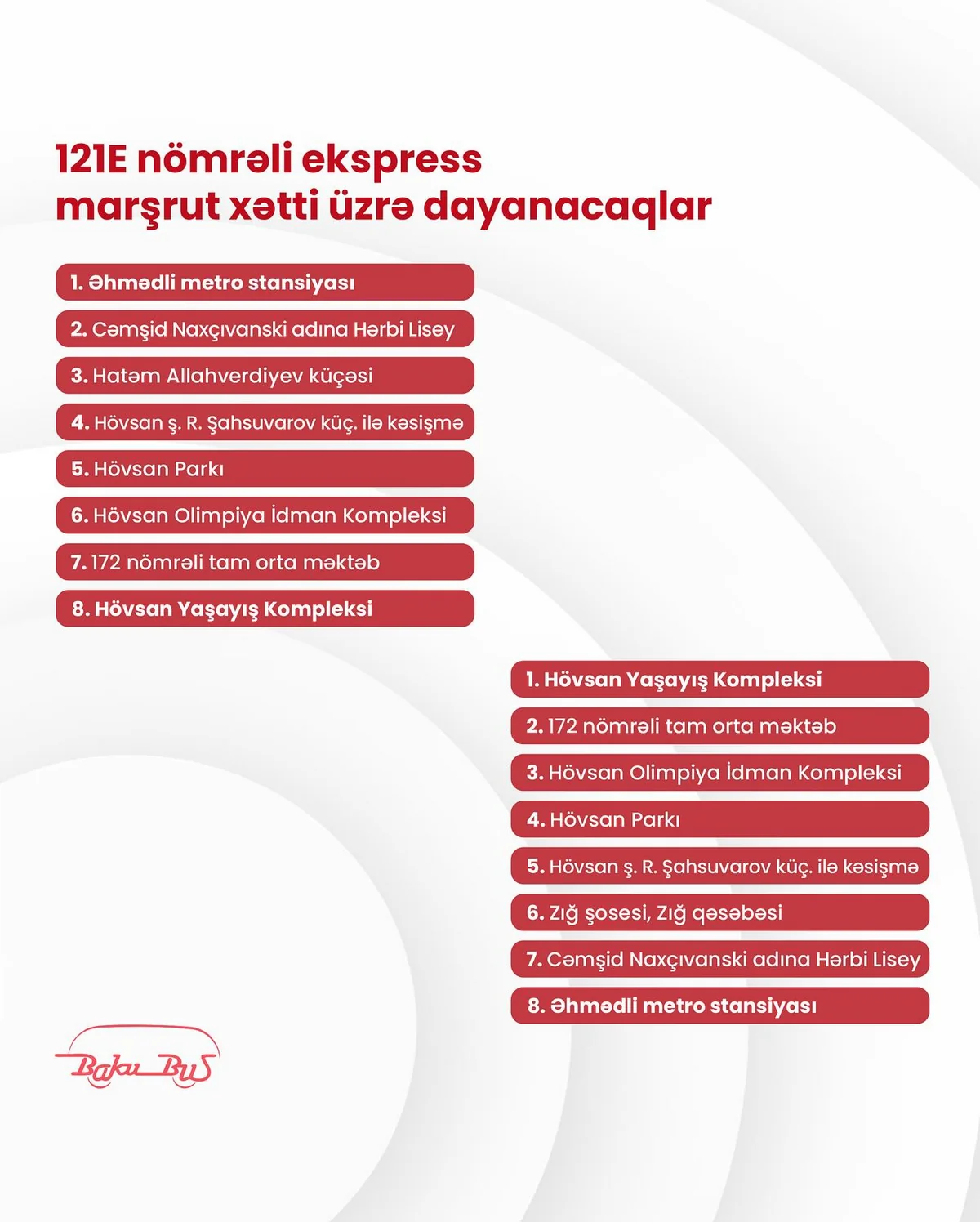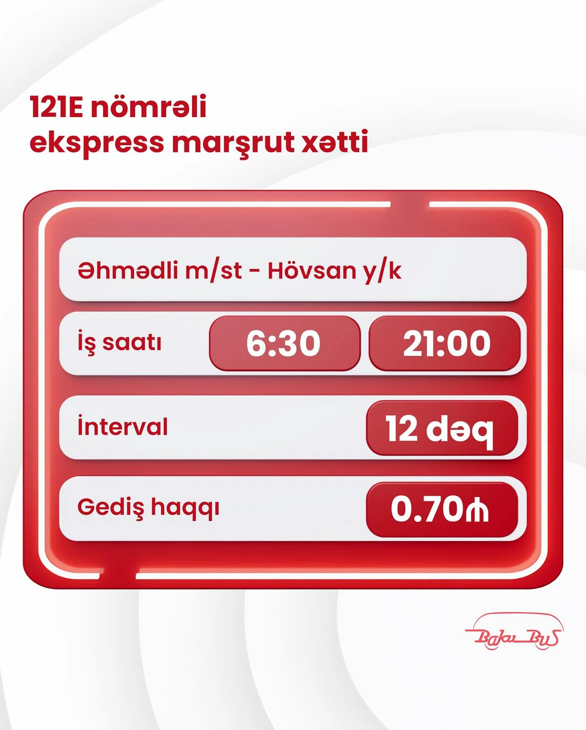 "BakuBus" 121 E nömrəli müntəzəm marşrut xəttini istifadəyə verib.