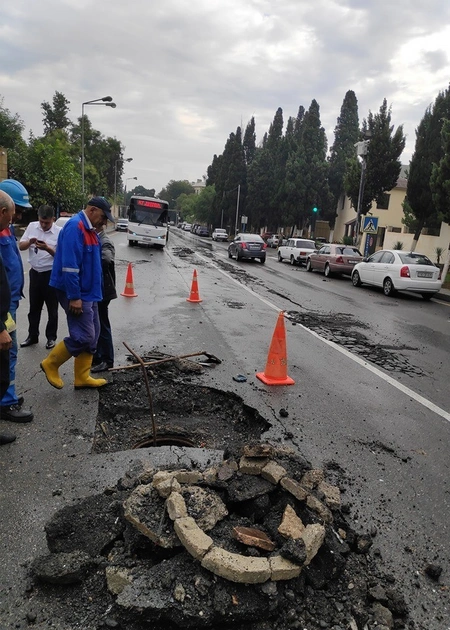 Bakı şəhəri, Binəqədi rayonu, Biləcəri qəsəbəsi Natavan küçəsində (Biləcəri əyləncə parkının yaxınlığı) yolun altından keçən və “Azərsu” ASC-yə məxsus kanalizasiya kollektorunda qəza baş verib və nəticədə yolun həmin hissəsində asfalt-beton örtükdə dağılmalar və çökmə qeydə alınıb.
