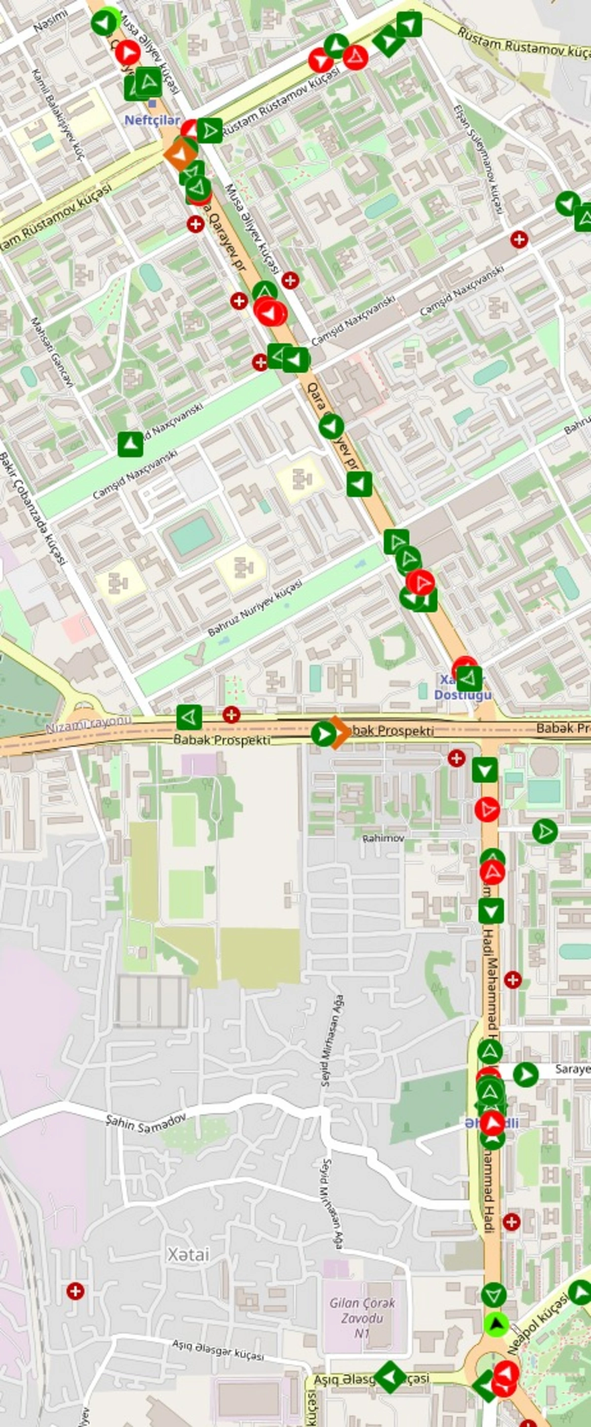 11. Həsən bəy Zərdabi küçəsi - 20 Yanvar dairəsi istiqamətində 7B, 9, 14, 18, 29, 165, 194, 205 və 211 nömrəli müntəzəm marşrut xətlərindəki avtobuslararası intervallarda 12 - 17 dəqiqə gecikmə müşahidə olunur
