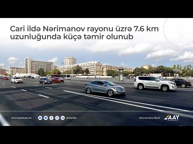 Azərbaycan Avtomobil Yolları Dövlət Agentliyi bu il Bakının Nərimanov rayonu üzrə 7,6 kilometr uzunluğunda 7 küçə təmir edib.