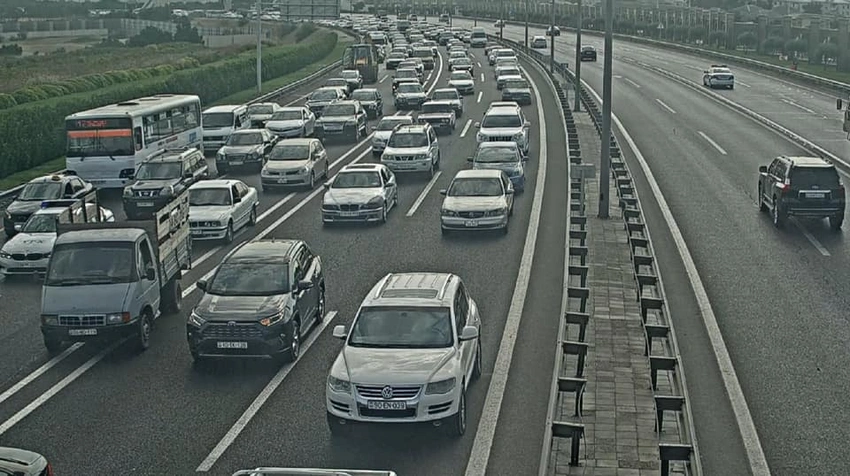 Heydər Əliyev Hava Limanı yolundan mərkəz istiqamətində nəqliyyat vasitələrinin hərəkətində sıxlıq müşahidə edilir.
