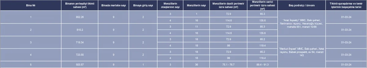 Sumqayıt Yaşayış Kompleksi üzrə satışa çıxarılmış mənzillər barədə ümumi məlumat: