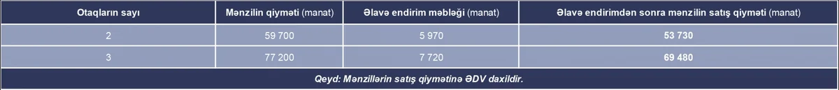 2 otaqlı mənzillərin qiyməti – 59 700 manatdan,