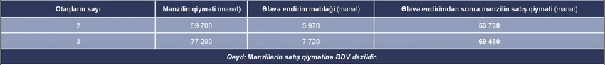 3 otaqlı mənzillərin qiyməti – 61 965 manatdan,