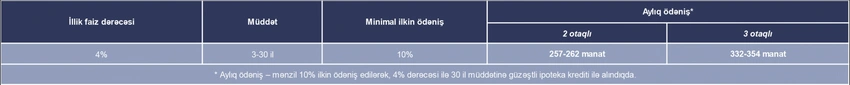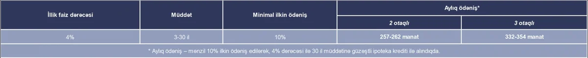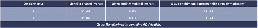 4 otaqlı mənzillərin qiyməti – 84 150 manatdan başlayır.