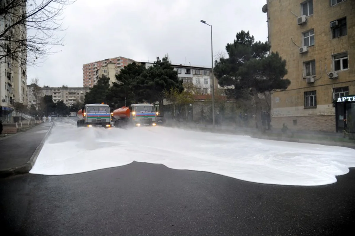 Bakı Şəhər İcra Hakimiyyətinin Mətbuat Xidmətindən "Report"a verilən məlumata görə, Bakıda koronavirusla bağlı mövcud vəziyyət nəzərə alınaraq, yanvarın 2-də səhər saatlarından etibarən icra hakimiyyətinin strukturları tərəfindən 2021-ci ildə birinci, ölkədə pandemiya əleyhinə tədbirlərin əvvəlindən isə on doqquzuncu dəfə paytaxtın əsas küçə, prospekt və yollarında kommunal təsərrüfat xidmətlərinin 40 ədəd xüsusi texnikası və 2 000 nəfər əməkdaşı cəlb edilməklə, xüsusi kimyəvi maddələrlə əlavə gücləndirilmiş dezinfeksiya işləri həyata keçirilir.