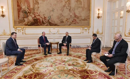 Bakı. 13 mart. REPORT.AZ/ Azərbaycan Prezidenti İlham Əliyev martın 13-də Parisdə “Airbus” şirkətinin müdafiə və kosmik sistemlər üzrə icraçı vitse-prezidenti Nikolya Şamosi ilə görüşüb.