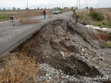 Sel suları Şəkidə yol infrastrukturuna və qurğularına ziyan vurub