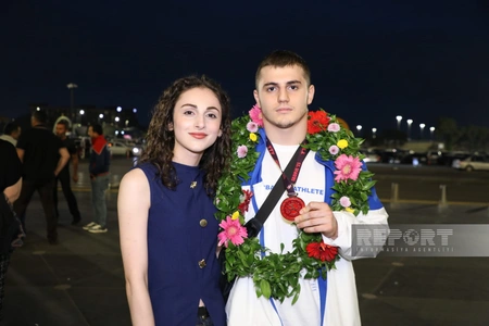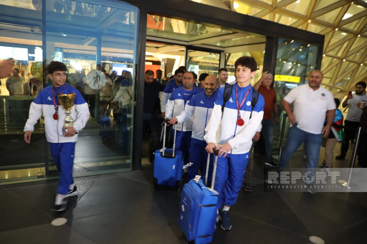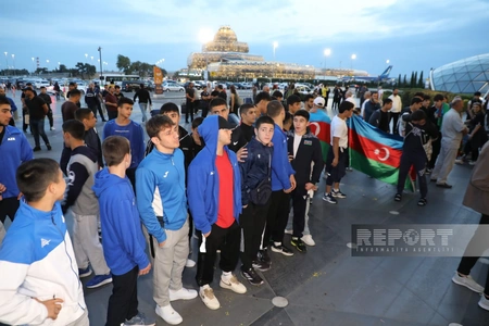 "Report" xəbər verir ki, güləşçiləri gətirən təyyarə Heydər Əliyev Beynəlxalq Hava Limanına enib.