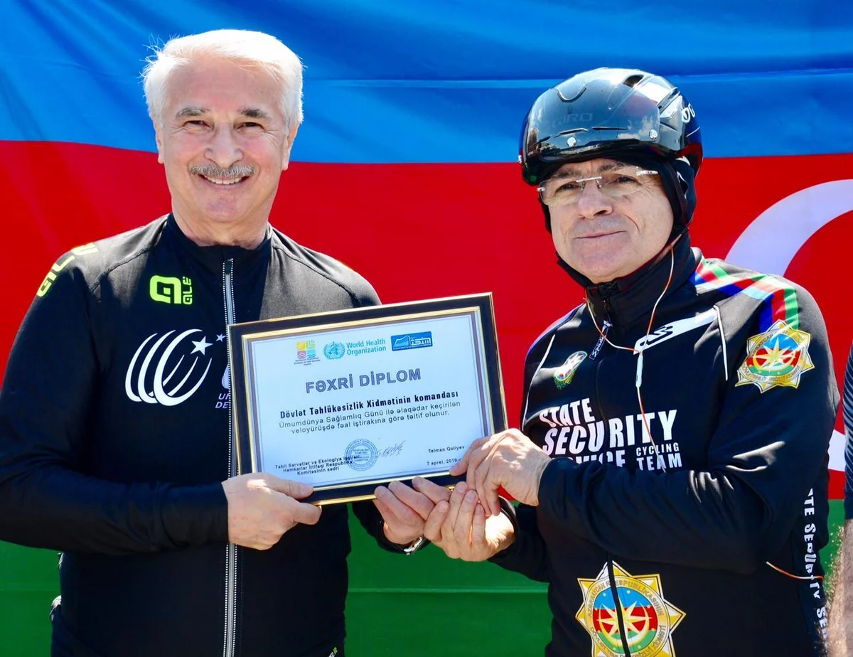 Dövlət Təhlükəsizlik Xidmətinin rəisi, general Mədət Quliyev, ekologiya və təbii sərvətlər nazirinin müavini Firdovsi Əliyev, vergilər nazirinin müavini Sahib Ələkbərovun da iştirak etdiyi veloyürüş Umumdünya Sağlamlıq günü ilə əlaqədar Ekologiya və Təbii Səırvətlər Nazirliyinin təşəbbüsü, Səhiyyə Nazirliyi İctimai Səhiyyə və İslahatlar Mərkəzi və Dünya Səhiyyə Təşkilatının təşkilatçılığı, Azərbaycan Velosiped İdmanı Federasiyası və Respublika Olimpiya Velosiped Məktəbinin dəstəyi ilə təşkil edilib.