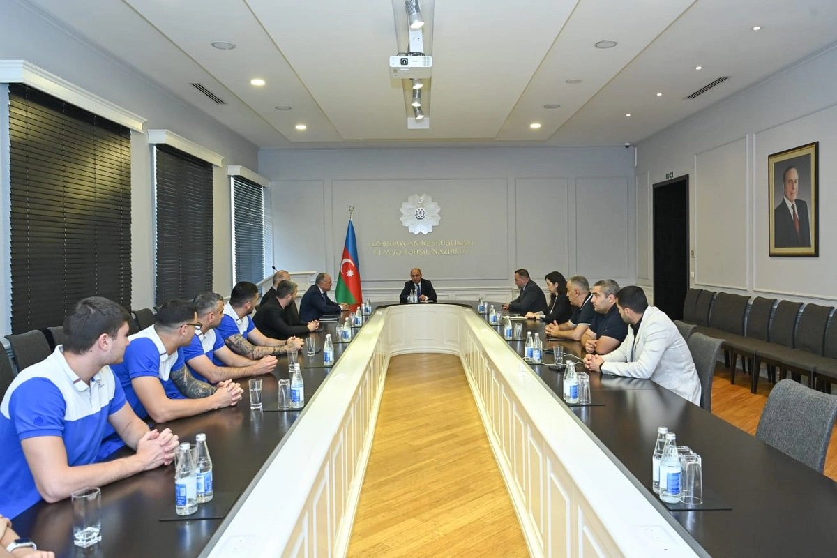 Görüşün sonunda federasiya rəsmiləri, milli komandanın qalib üzvləri ilə xatirə şəkili çəkdirilib.