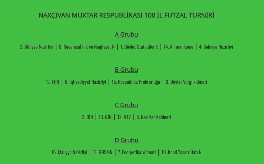 Naxçıvan Muxtar Respublikasının 100 illik yubileyi ilə əlaqədar dövlət qurumları arasında futzal yarışı təşkil olunacaq.