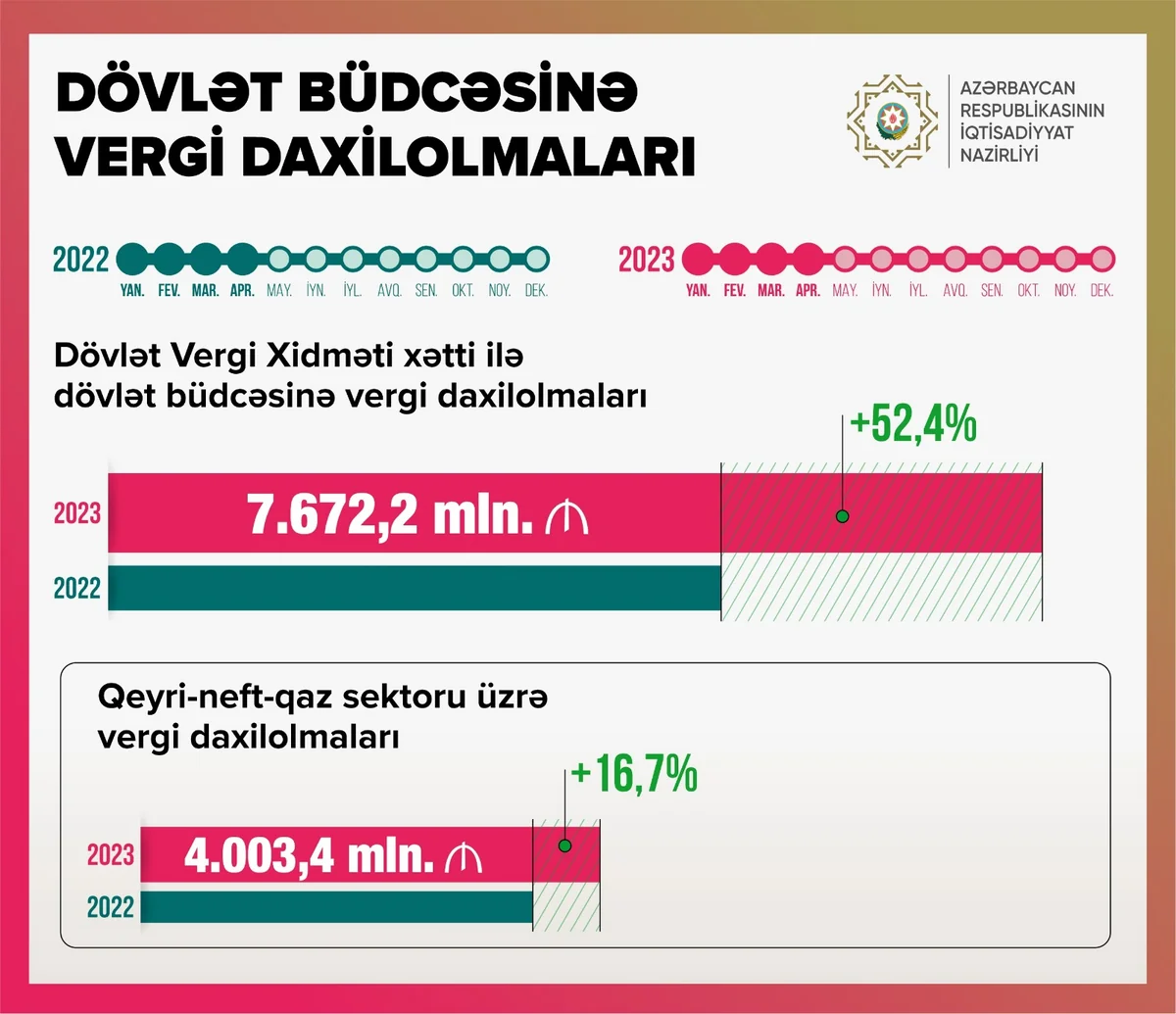 Azərbaycanda vergi daxilolmaları 52 % artıb