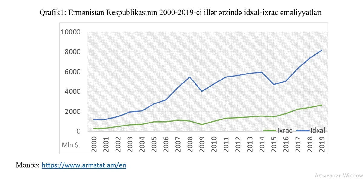 N.Hacızadə hesab edir ki, Ermənistanın “failed state” statusuna ən bariz nümunə bu ölkənin tarazlığı qaçmış tədiyyə balansıdır: