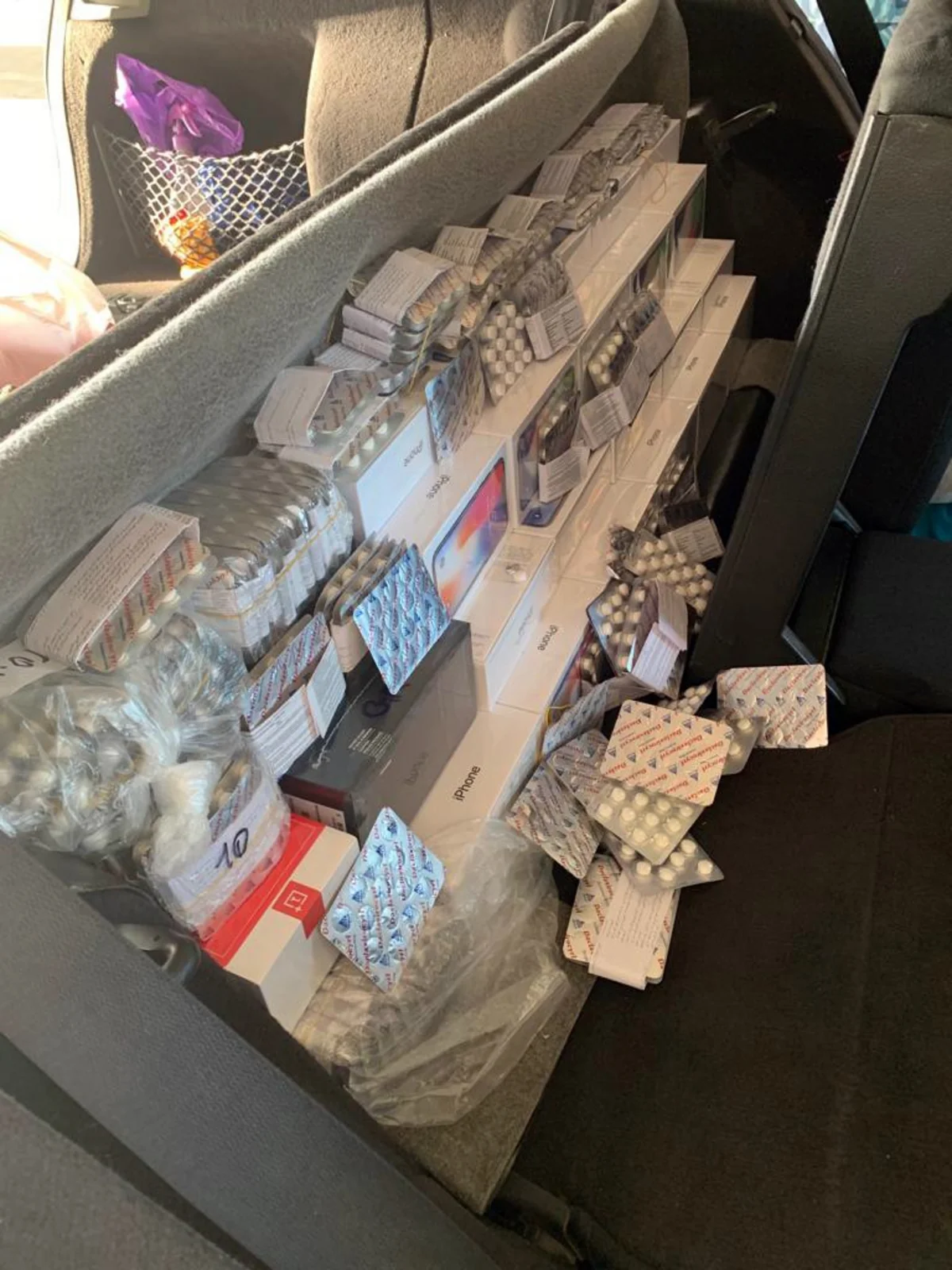 Dövlət Gömrük Komitəsindən “Report”a verilən məlumata görə, nəqliyyat vasitəsinin arxa oturacağı ilə yük yerinin arasındakı boşluqda gömrük nəzarətindən gizlədilən, qutuları və aksesuarları ilə bilikdə 34 ədəd "İphone X Space Gray 64 GB", 25 ədəd "İphone X Silver 64 GB", 1 ədəd "İphone 7 Black 32 GB", 1 ədəd "OnePlus7 256 GB", 1 ədəd "OnePlus 7 Pro 256 GB", 2 ədəd "Samsung Galaxy S10+ 128 GB", 3 ədəd "Samsung Galaxy S10128 GB" markalı təzə mobil telefonlar, "Daclavirocyrl 60 mg" adlı 2461 həb dərman preparatı aşkarlanıb.