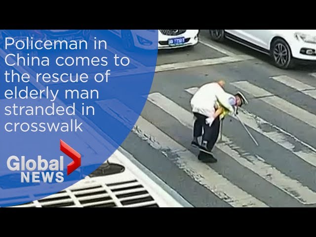 Belə olduqda nizamlayıcı polis ona tərəf gəlib. O, qocanı belinə alaraq yolu keçirib.